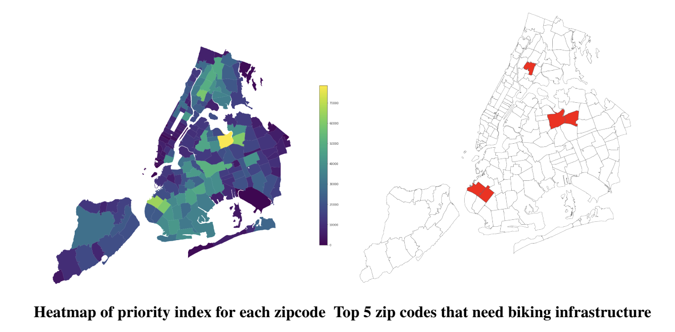 To practive for the MCM, our team also built an optimization model to identify NYC zip codes which would benefit the most from bike land investment based on maximal usage and community benefits. Paper accessed here.